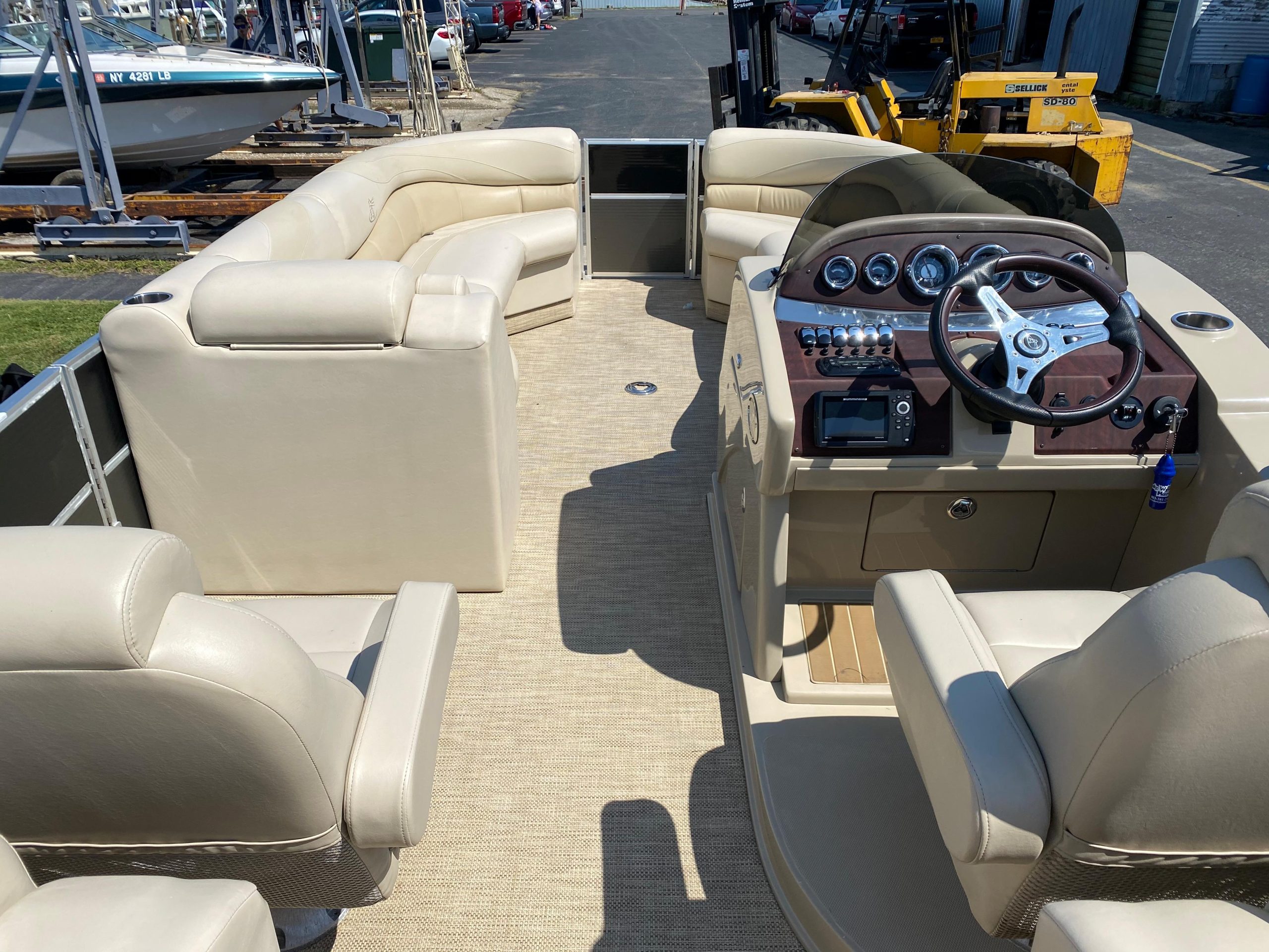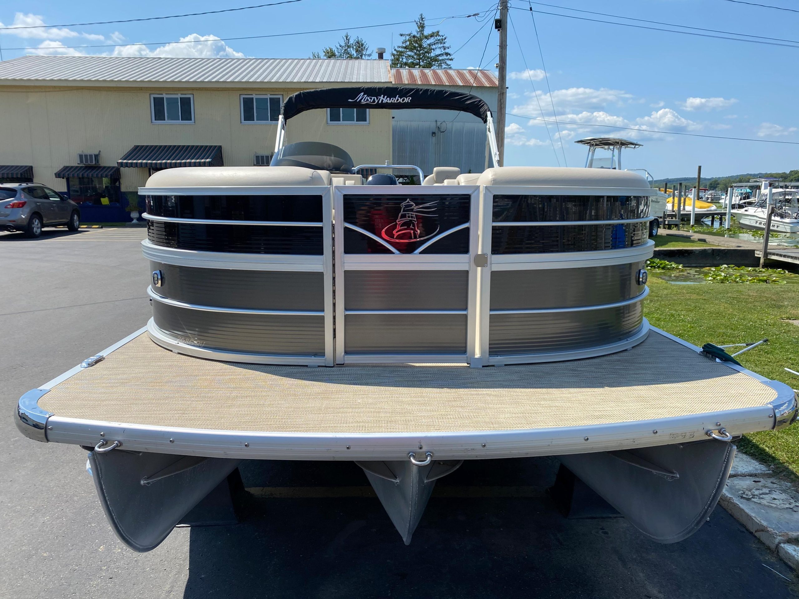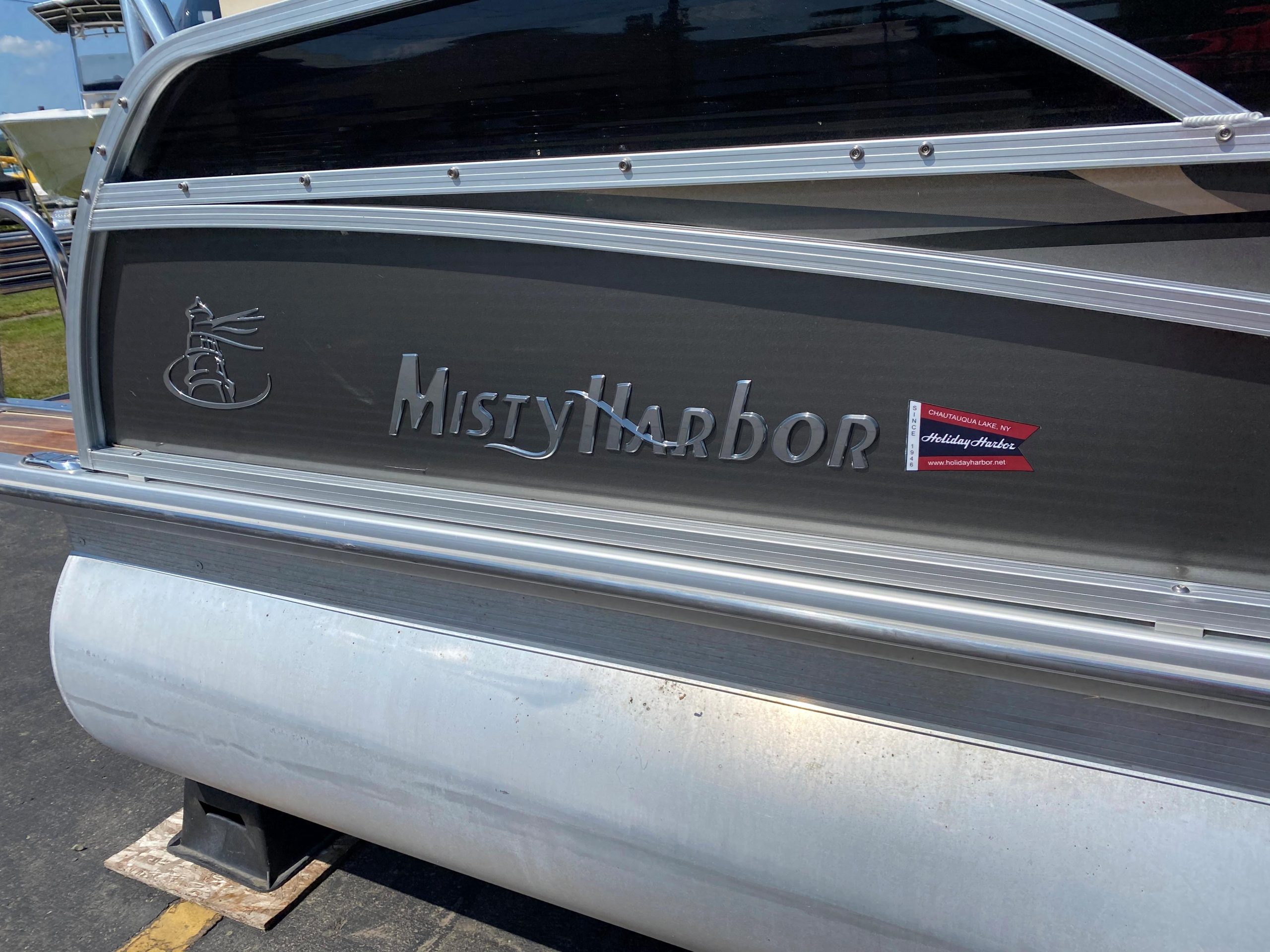 Gently used 2015 Misty Harbor 2685SU Skye Series-Tri Toon. Beautiful Graphite and Ebony trim package with vinyl sea grass mat flooring. SHARP!!! You will notice the additional stability and speed with the third pontoon. She also has the stainless steel performance shield underside for added protection, less water resistance and lifting strakes. She has a very cool and functional “U seating fore and aft for plenty of entertaining space and comfort. Also included are dual captain chairs in the helm area. She is an exceptional value with all of the options. Portable fore and aft seat, Interior Blue LED lighting package, Pro Style Ski Tow Bar, Full crib Cover, Bimini top, Raised Helm…just to name a few of her premium options. She come with a 2015 250HP Mercury Verado Pro 4 Stroke ELPT with only 218 HOURS! Infinity stereo with Bluetooth AM/FM/Bluetooth connect, full crib cover, ski/tow bar-just to name a few. Great for a cruise and entertaining. 25″ pontoons made with heavy .09 gauge aluminum. All stainless steel bolts (not screws) and brackets attach her structure. In transom 58 gallon fuel tank. Heavy Duty stainless steel boarding ladder. Stop down for a personal viewing! She is a steal for $34,500. She would sell for over $105,000 new.