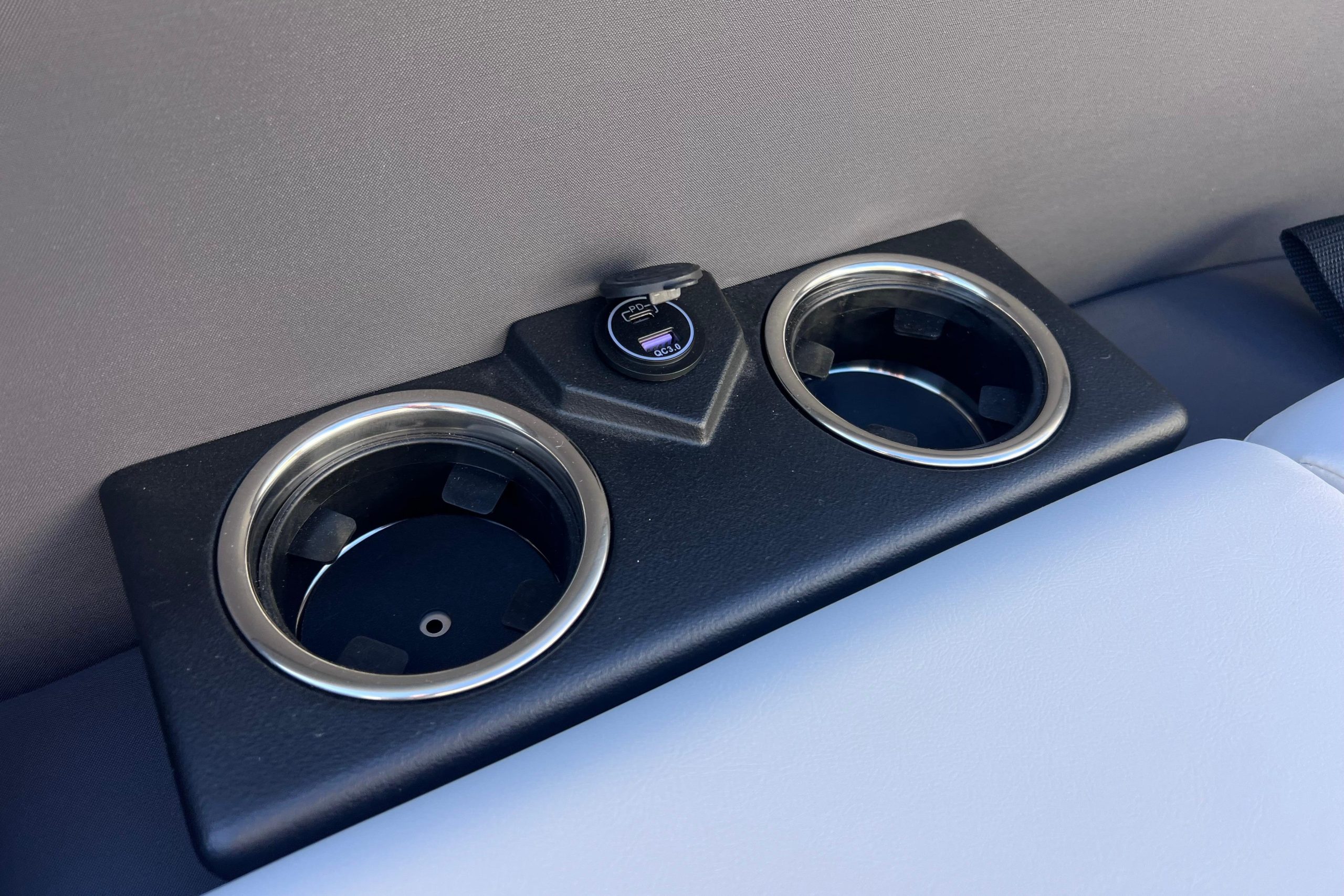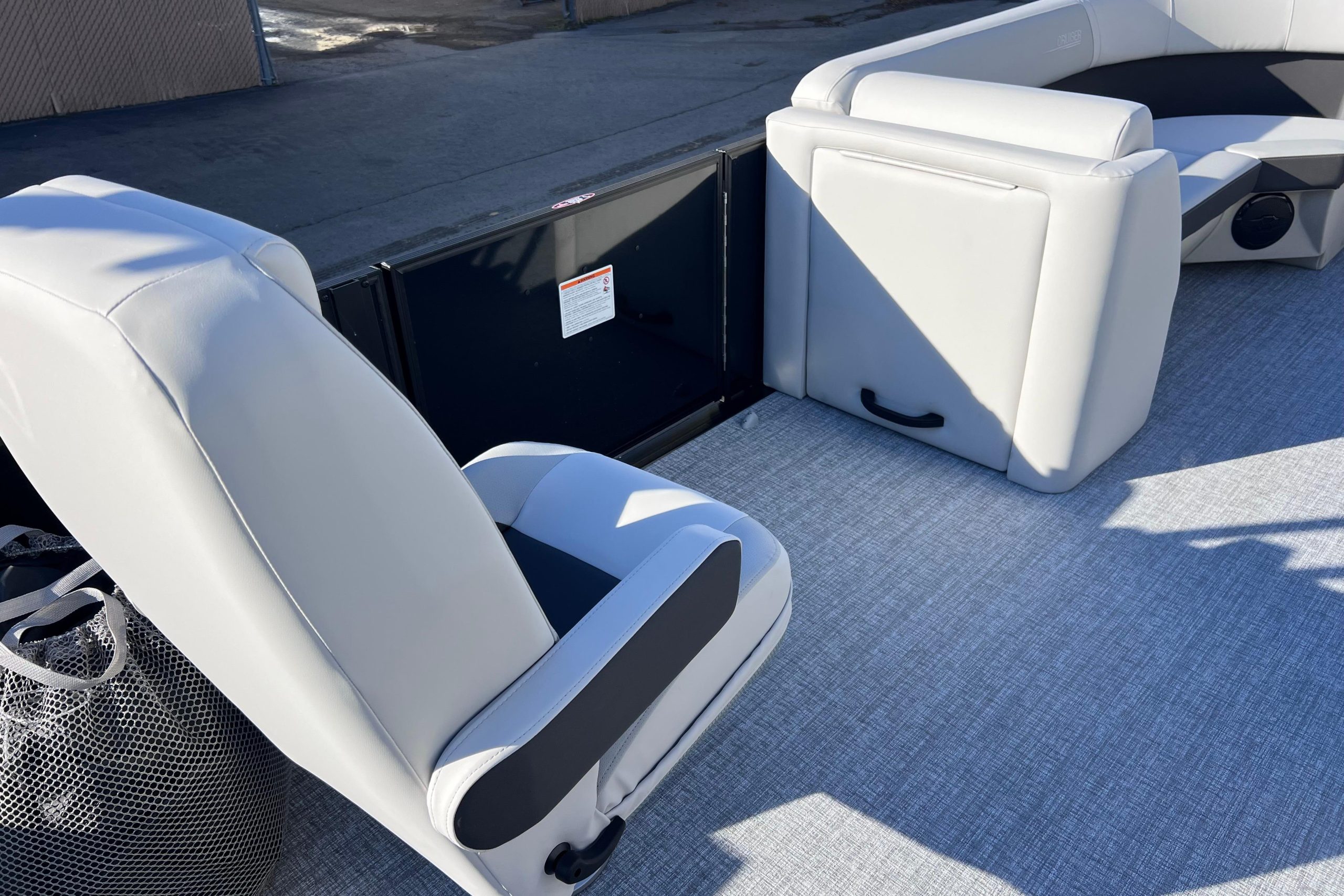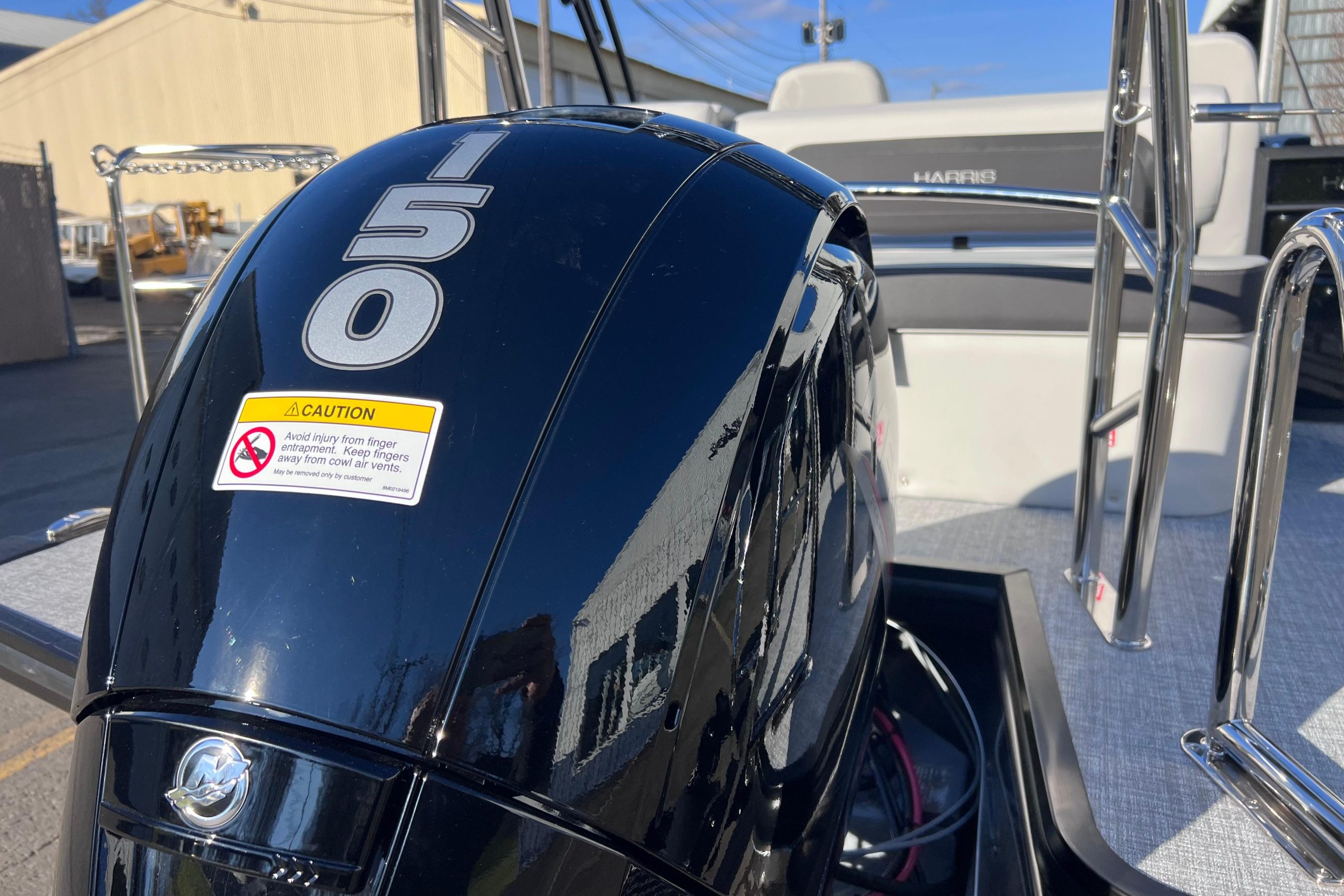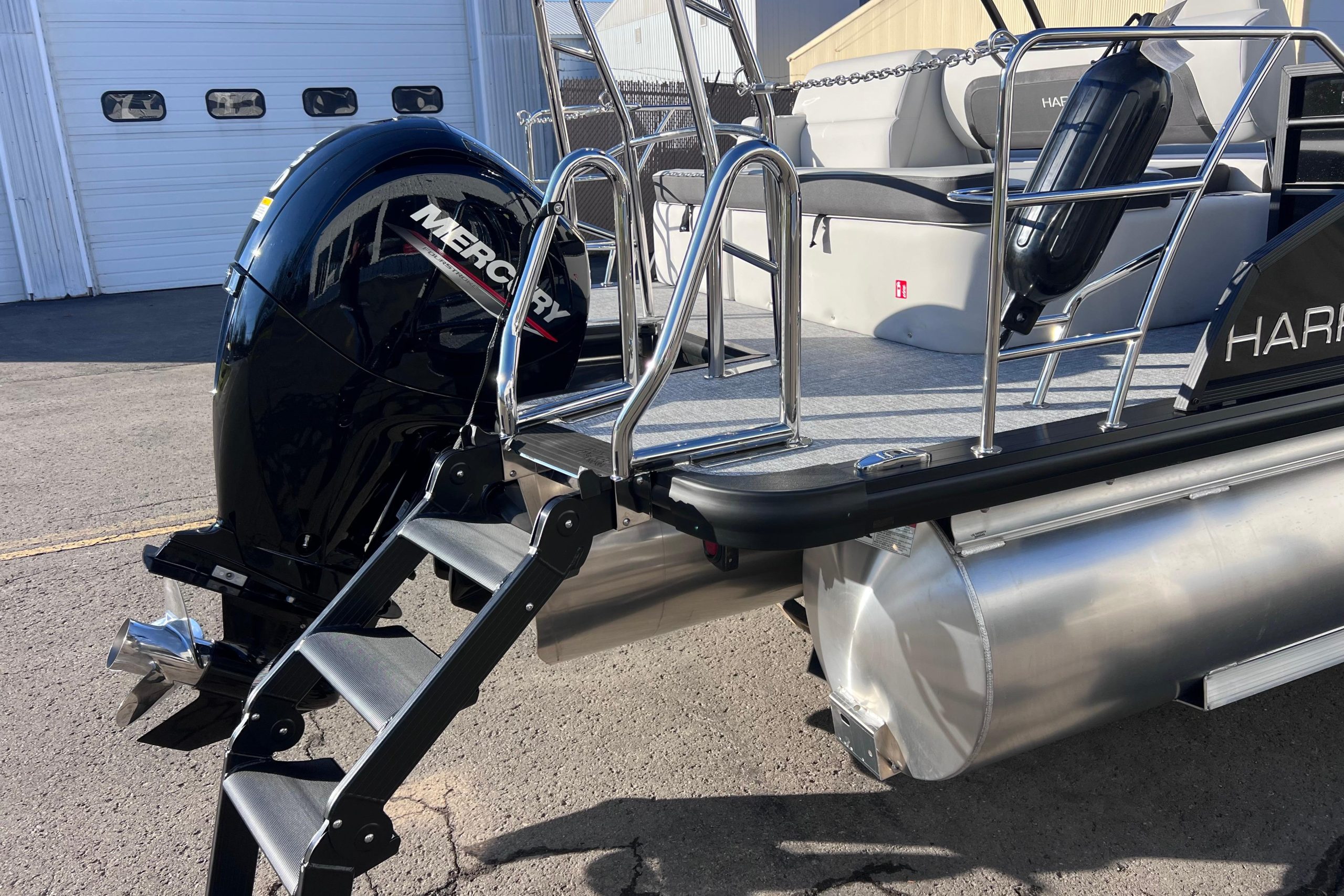 All NEW 2026 Harris Pontoon. She is the Cruiser 230 SLDH Tri-Toon Model with the cool real adjustable lounger. Beautiful Ebony Metallic with the Black Edition. Her interior is Tungsten with matching vinyl weave flooring. She is powered by her Mercury 150 HP and hydraulic Steering. She is loaded with options including her Power Bimini, LilliPad upgraded Ladder, Ski Tow Bar, Wireless Charger at the Helm, WetSound Speakers with Bluetooth Stereo…just to name a few options. We are open year round. Stop down in our heated showroom to see this beauty.