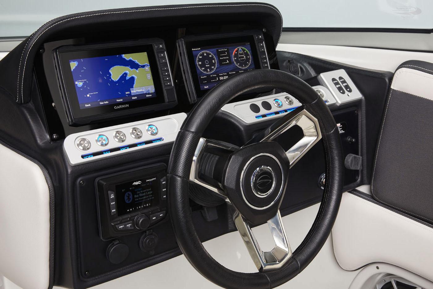 ALL NEW 2027 CROWNLINE 278 SS is made for good times with friends and family. She is powered by her MerCruiser 6.2L 350HP with her Bravo 3 Drive. Standard features include Crownline’s patented retractable electric swim step, which folds down when the boat is at rest to give you a comfortable seat right in the water and makes boarding or exiting a breeze. You’ll also enjoy a sleek electric Moonstone arch, a Social Swim™ transom, a Wet Sounds premium stereo with eight Wet Sounds speakers, an electric-lift engine hatch, and an enclosed head with an electric flush toilet, handheld shower, cabinetry with sink and granite countertop, head door insert with storage netting, and a screened portlight. She is packaged with her custom trailer.